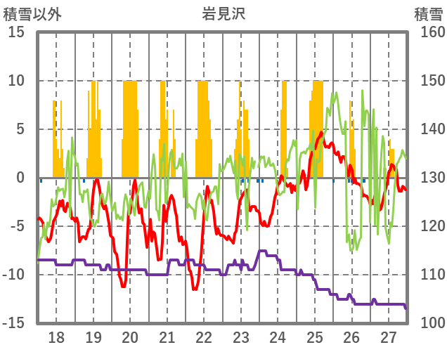 | 日 | 時 | 気温 | 降水 | 風向/風速 | 日照 | 積雪 | 降雪 |