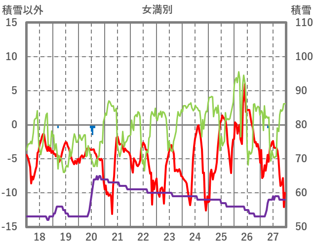 | 日 | 時 | 気温 | 降水 | 風向/風速 | 日照 | 積雪 | 降雪 |