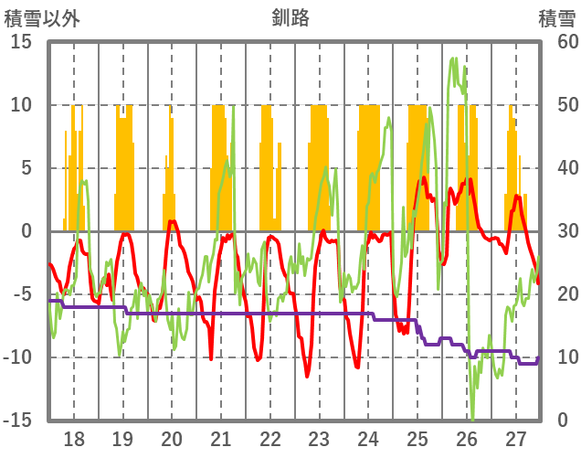 | 日 | 時 | 気温 | 降水 | 風向/風速 | 日照 | 積雪 | 降雪 |
