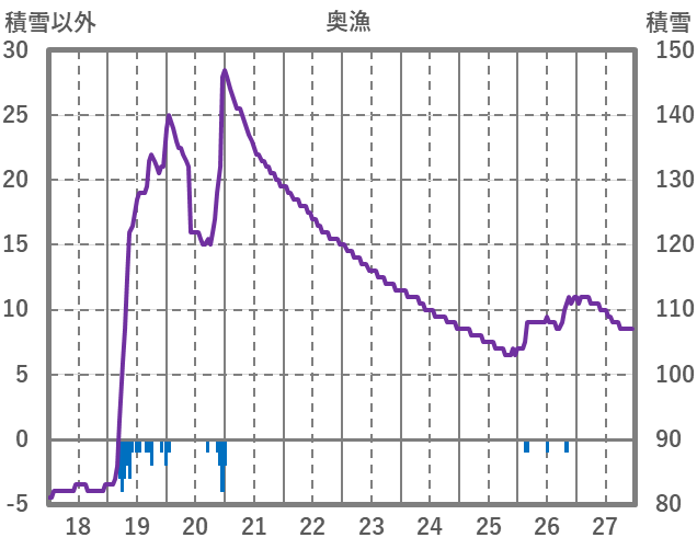 | 日 | 時 | 気温 | 降水 | 風向/風速 | 日照 | 積雪 | 降雪 |