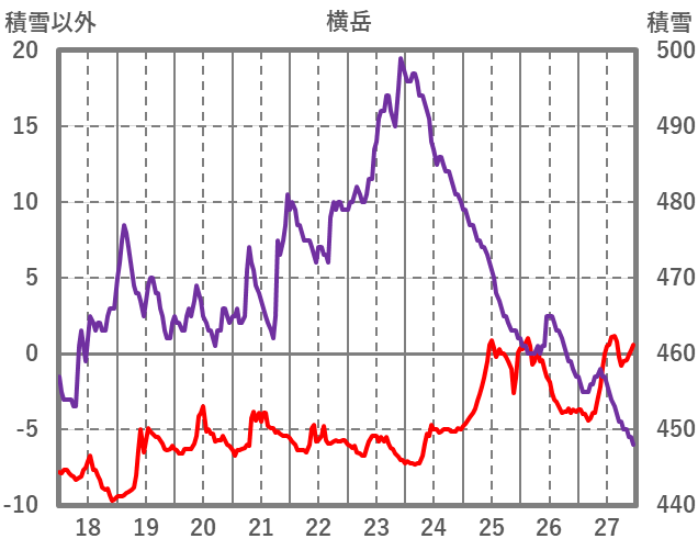 | 日 | 時 | 気温 | 降水 | 風向/風速 | 日照 | 積雪 | 降雪 |