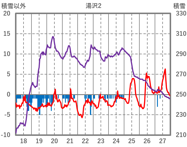 | 日 | 時 | 気温 | 降水 | 風向/風速 | 日照 | 積雪 | 降雪 |