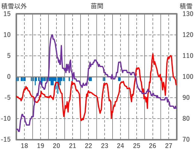 | 日 | 時 | 気温 | 降水 | 風向/風速 | 日照 | 積雪 | 降雪 |