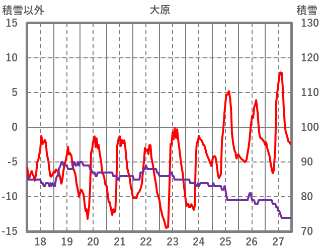 | 日 | 時 | 気温 | 降水 | 風向/風速 | 日照 | 積雪 | 降雪 |
