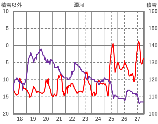 | 日 | 時 | 気温 | 降水 | 風向/風速 | 日照 | 積雪 | 降雪 |