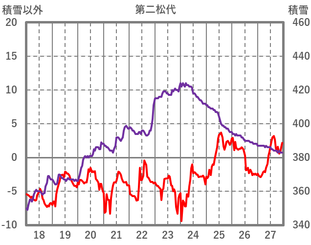 | 日 | 時 | 気温 | 降水 | 風向/風速 | 日照 | 積雪 | 降雪 |