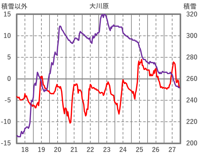 | 日 | 時 | 気温 | 降水 | 風向/風速 | 日照 | 積雪 | 降雪 |