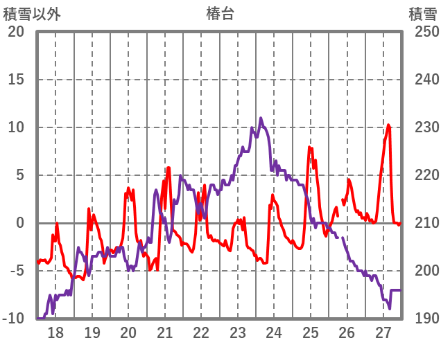 | 日 | 時 | 気温 | 降水 | 風向/風速 | 日照 | 積雪 | 降雪 |