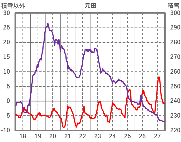 | 日 | 時 | 気温 | 降水 | 風向/風速 | 日照 | 積雪 | 降雪 |