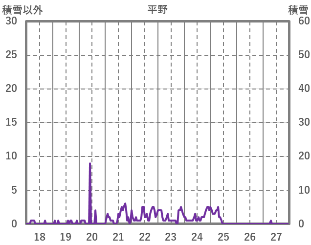 | 日 | 時 | 気温 | 降水 | 風向/風速 | 日照 | 積雪 | 降雪 |