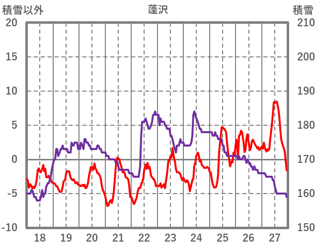 | 日 | 時 | 気温 | 降水 | 風向/風速 | 日照 | 積雪 | 降雪 |