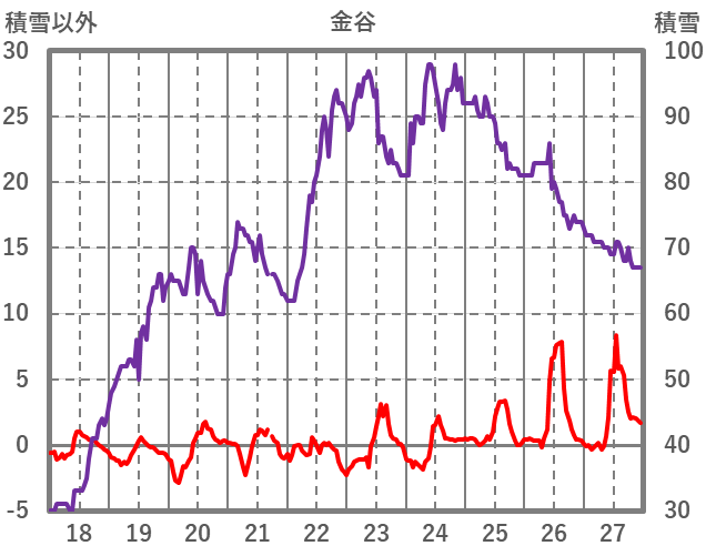 | 日 | 時 | 気温 | 降水 | 風向/風速 | 日照 | 積雪 | 降雪 |