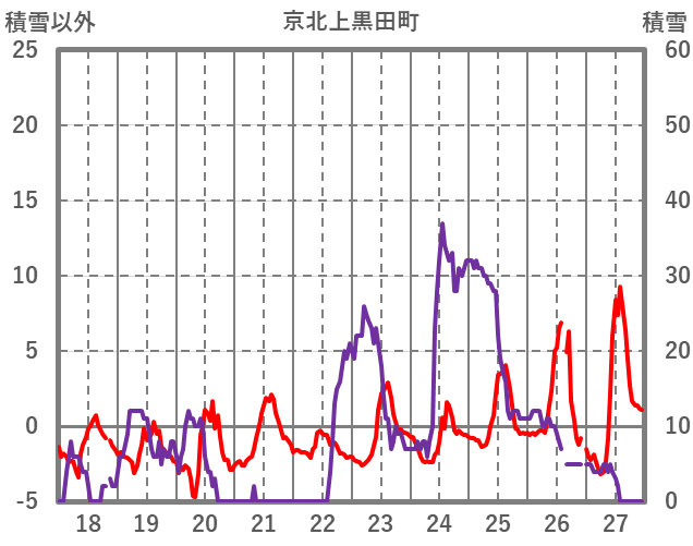 | 日 | 時 | 気温 | 降水 | 風向/風速 | 日照 | 積雪 | 降雪 |