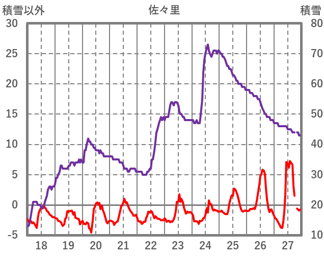| 日 | 時 | 気温 | 降水 | 風向/風速 | 日照 | 積雪 | 降雪 |