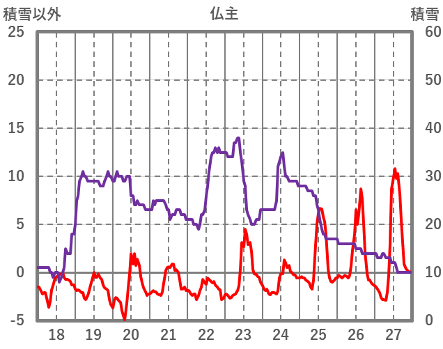 | 日 | 時 | 気温 | 降水 | 風向/風速 | 日照 | 積雪 | 降雪 |