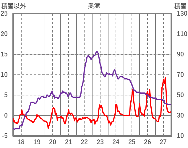 | 日 | 時 | 気温 | 降水 | 風向/風速 | 日照 | 積雪 | 降雪 |