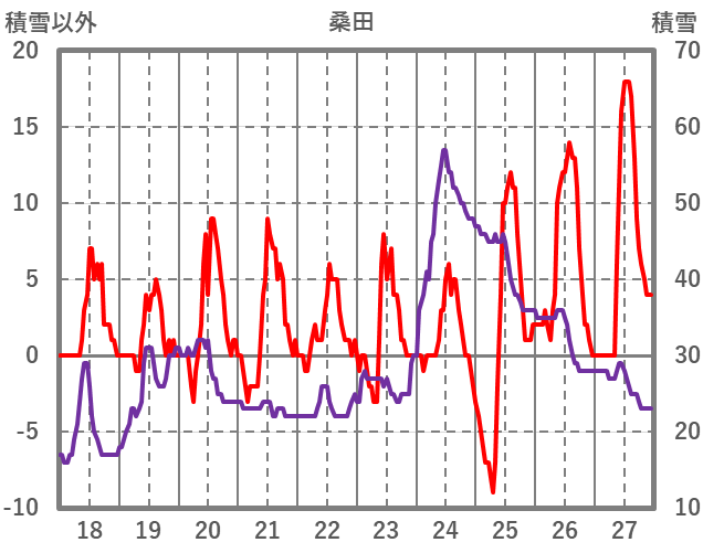 | 日 | 時 | 気温 | 降水 | 風向/風速 | 日照 | 積雪 | 降雪 |