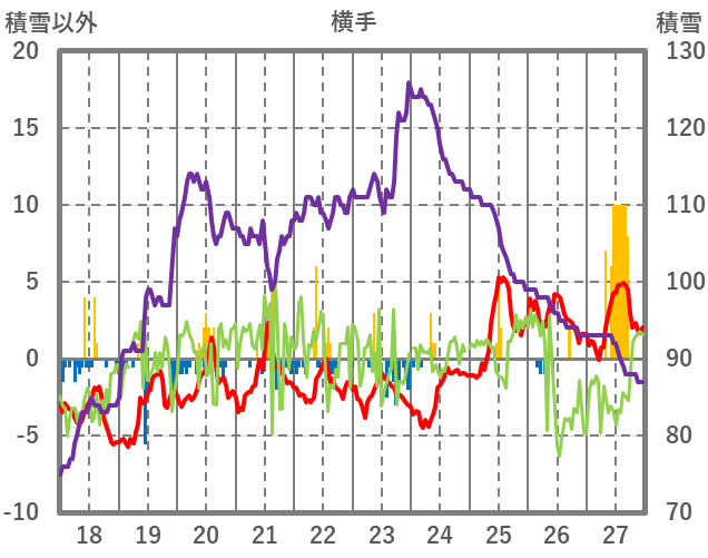 | 日 | 時 | 気温 | 降水 | 風向/風速 | 日照 | 積雪 | 降雪 |