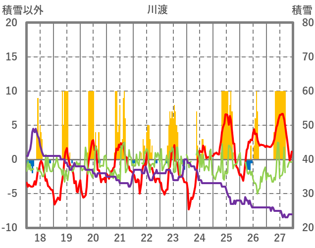 | 日 | 時 | 気温 | 降水 | 風向/風速 | 日照 | 積雪 | 降雪 |