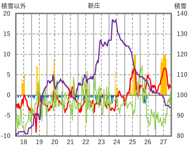 | 日 | 時 | 気温 | 降水 | 風向/風速 | 日照 | 積雪 | 降雪 |