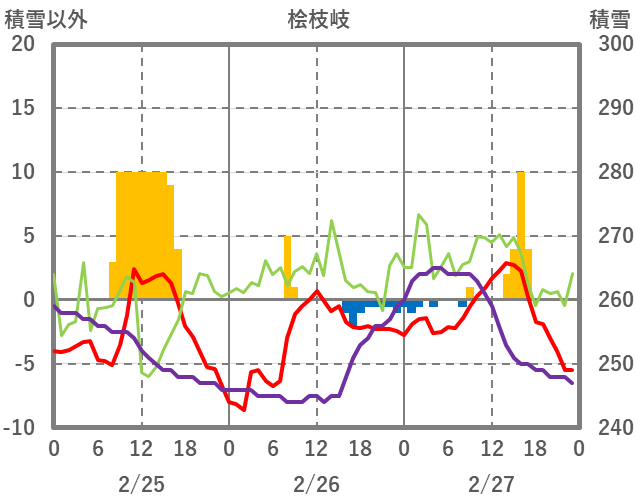 | 日 | 時 | 気温 | 降水 | 風向/風速 | 日照 | 積雪 | 降雪 |