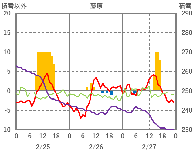 | 日 | 時 | 気温 | 降水 | 風向/風速 | 日照 | 積雪 | 降雪 |