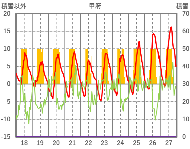 | 日 | 時 | 気温 | 降水 | 風向/風速 | 日照 | 積雪 | 降雪 |
