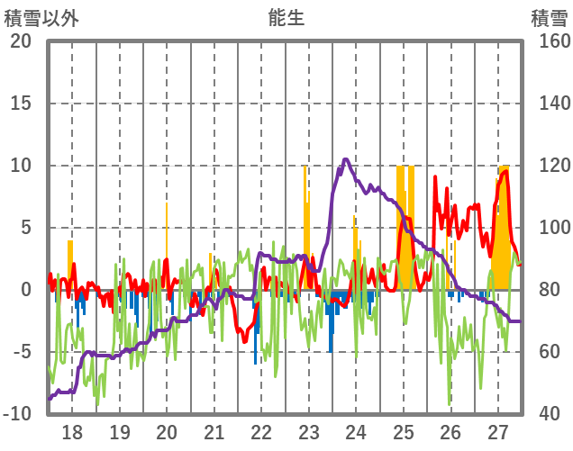 | 日 | 時 | 気温 | 降水 | 風向/風速 | 日照 | 積雪 | 降雪 |