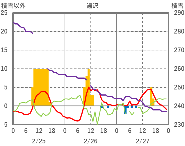 | 日 | 時 | 気温 | 降水 | 風向/風速 | 日照 | 積雪 | 降雪 |