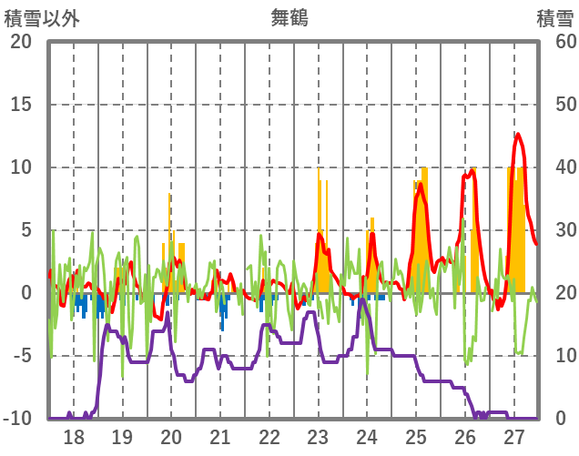 | 日 | 時 | 気温 | 降水 | 風向/風速 | 日照 | 積雪 | 降雪 |