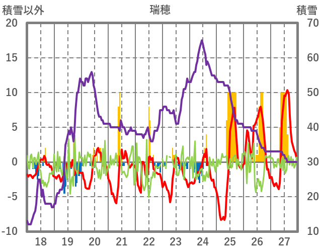 | 日 | 時 | 気温 | 降水 | 風向/風速 | 日照 | 積雪 | 降雪 |