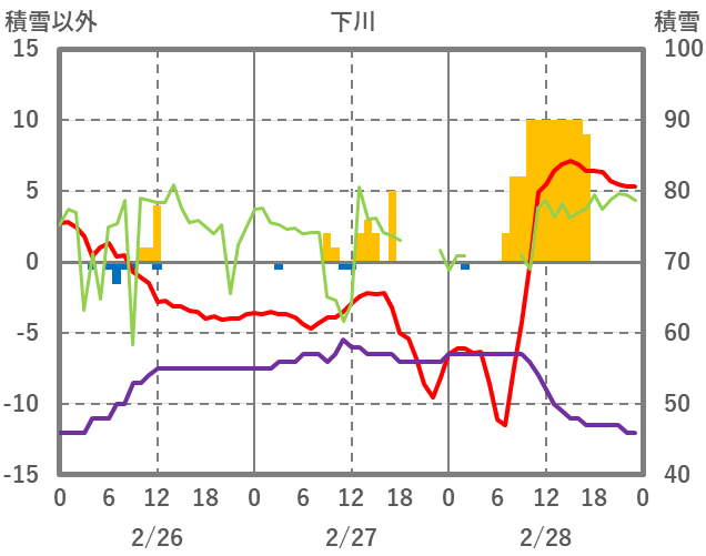 | 日 | 時 | 気温 | 降水 | 風向/風速 | 日照 | 積雪 | 降雪 |