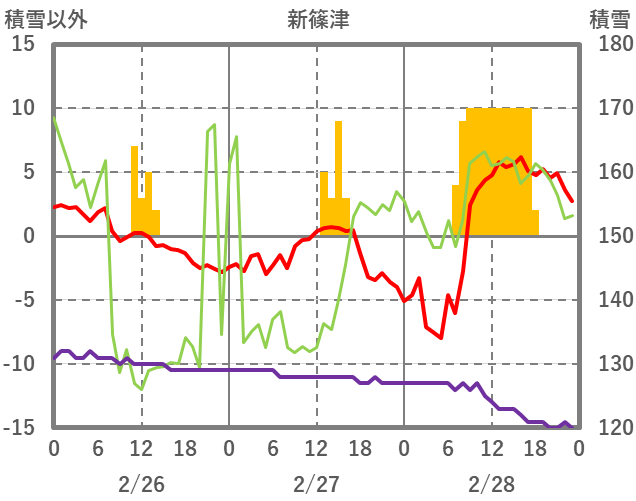 | 日 | 時 | 気温 | 降水 | 風向/風速 | 日照 | 積雪 | 降雪 |