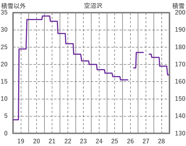 | 日 | 時 | 気温 | 降水 | 風向/風速 | 日照 | 積雪 | 降雪 |