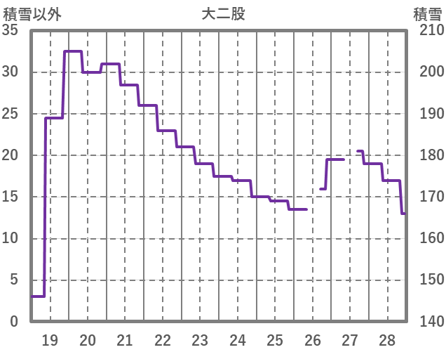 | 日 | 時 | 気温 | 降水 | 風向/風速 | 日照 | 積雪 | 降雪 |