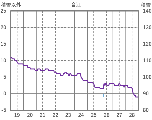 | 日 | 時 | 気温 | 降水 | 風向/風速 | 日照 | 積雪 | 降雪 |