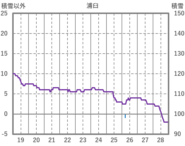 | 日 | 時 | 気温 | 降水 | 風向/風速 | 日照 | 積雪 | 降雪 |