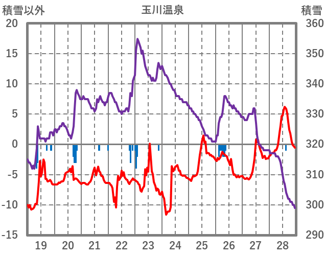 | 日 | 時 | 気温 | 降水 | 風向/風速 | 日照 | 積雪 | 降雪 |