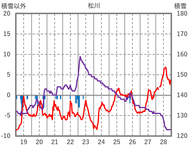 | 日 | 時 | 気温 | 降水 | 風向/風速 | 日照 | 積雪 | 降雪 |