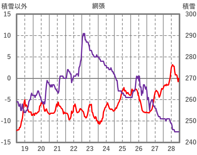 | 日 | 時 | 気温 | 降水 | 風向/風速 | 日照 | 積雪 | 降雪 |