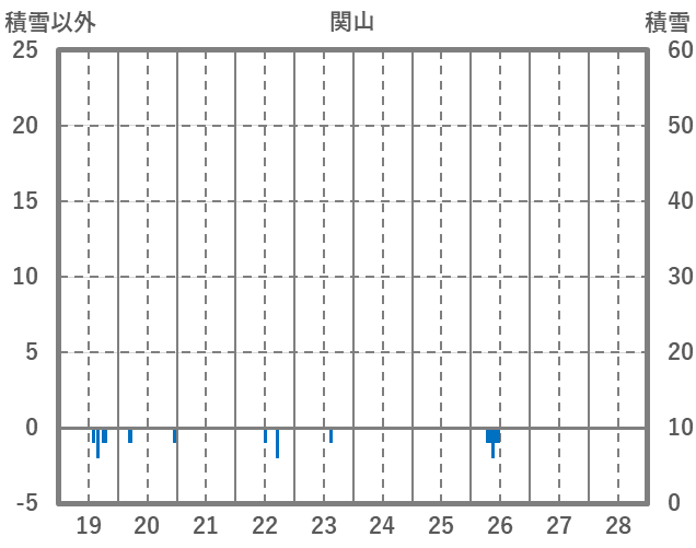 | 日 | 時 | 気温 | 降水 | 風向/風速 | 日照 | 積雪 | 降雪 |