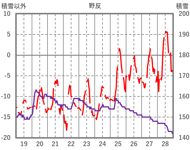 | 日 | 時 | 気温 | 降水 | 風向/風速 | 日照 | 積雪 | 降雪 |