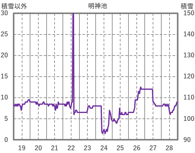 | 日 | 時 | 気温 | 降水 | 風向/風速 | 日照 | 積雪 | 降雪 |