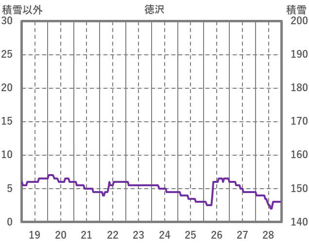 | 日 | 時 | 気温 | 降水 | 風向/風速 | 日照 | 積雪 | 降雪 |