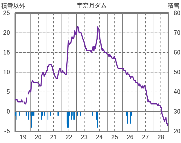| 日 | 時 | 気温 | 降水 | 風向/風速 | 日照 | 積雪 | 降雪 |