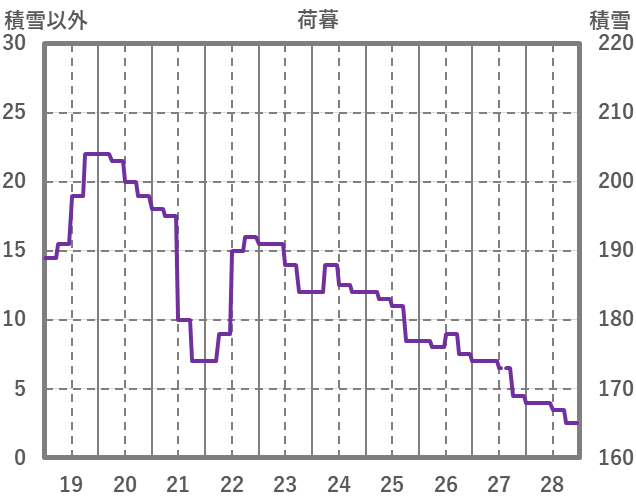 | 日 | 時 | 気温 | 降水 | 風向/風速 | 日照 | 積雪 | 降雪 |