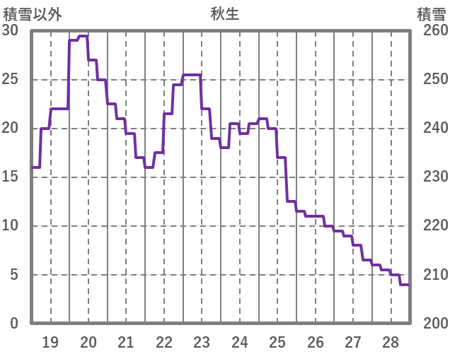 | 日 | 時 | 気温 | 降水 | 風向/風速 | 日照 | 積雪 | 降雪 |