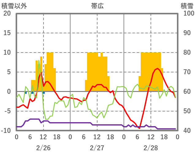| 日 | 時 | 気温 | 降水 | 風向/風速 | 日照 | 積雪 | 降雪 |