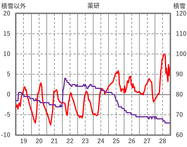 | 日 | 時 | 気温 | 降水 | 風向/風速 | 日照 | 積雪 | 降雪 |