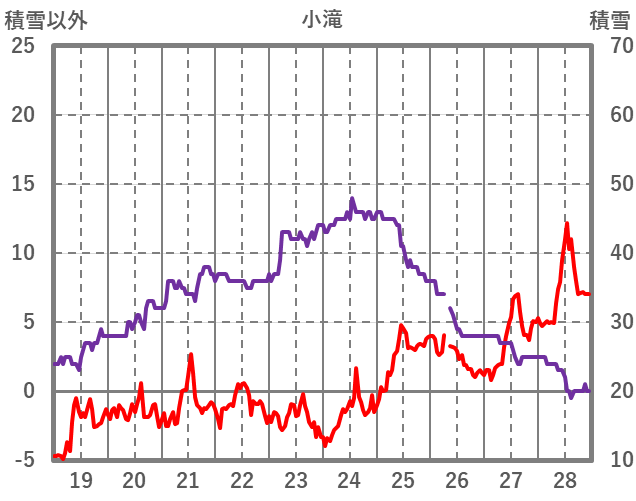 | 日 | 時 | 気温 | 降水 | 風向/風速 | 日照 | 積雪 | 降雪 |
